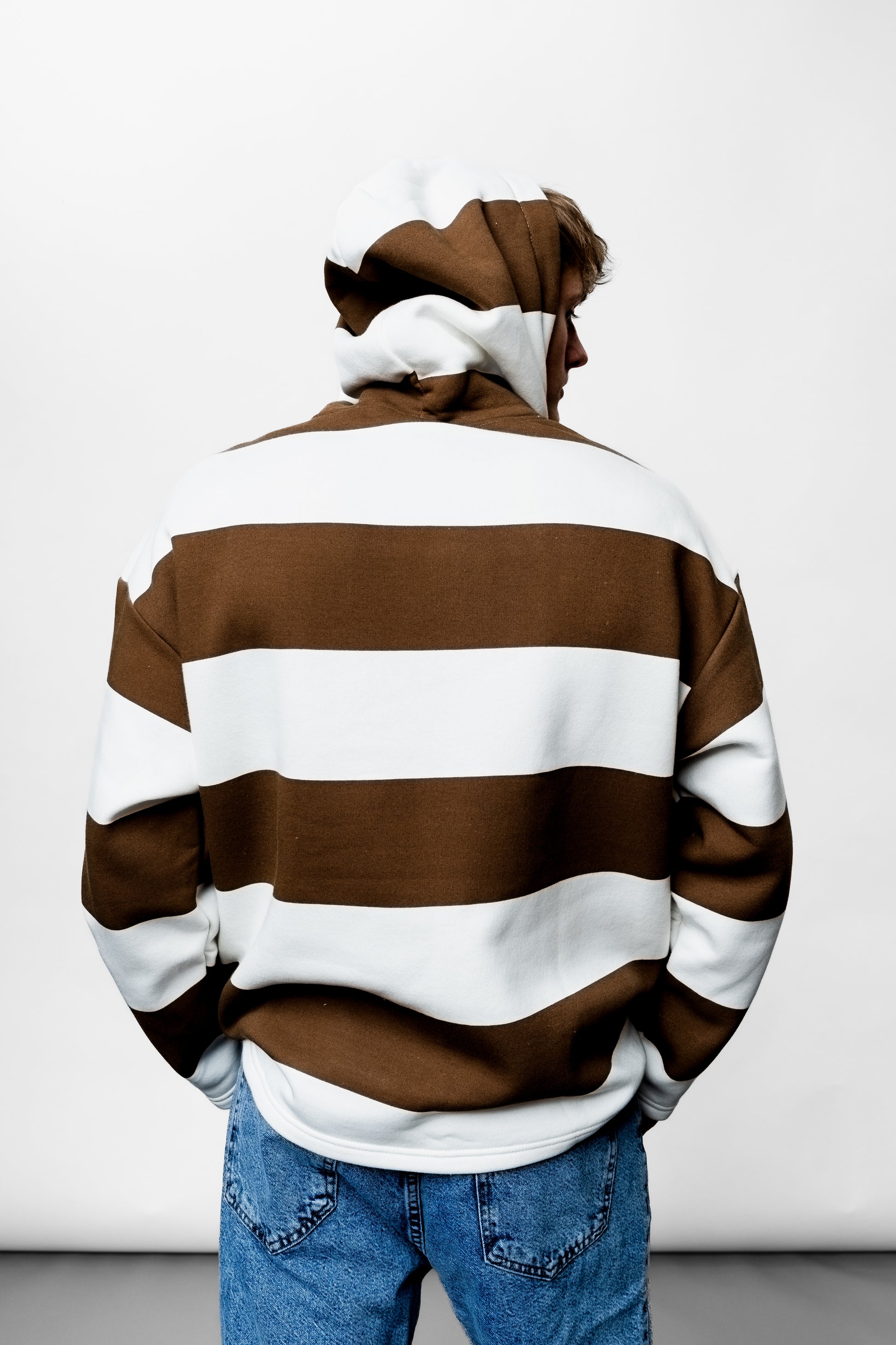 Der Brown Stripes Oversize Hoodie EL-1058 von albedishop.de überzeugt durch seinen modernen Look mit braun-weißem Streifenmuster. Der bequeme Schnitt und die weiche Materialqualität machen ihn zum perfekten Begleiter für entspannte Tage.