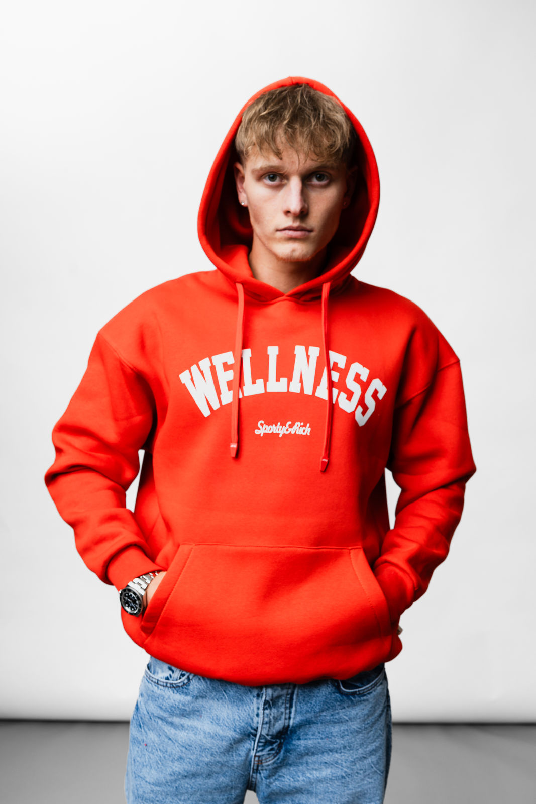 Der Wellness Red Oversize Hoodie B-1072 von albedishop.de. Dein neuer Lieblings-Hoodie. Dieser stylische Hoodie in rot mit großer Aufschrift vorne, kombiniert Komfort und Lässigkeit – perfekt für deinen Alltag.
